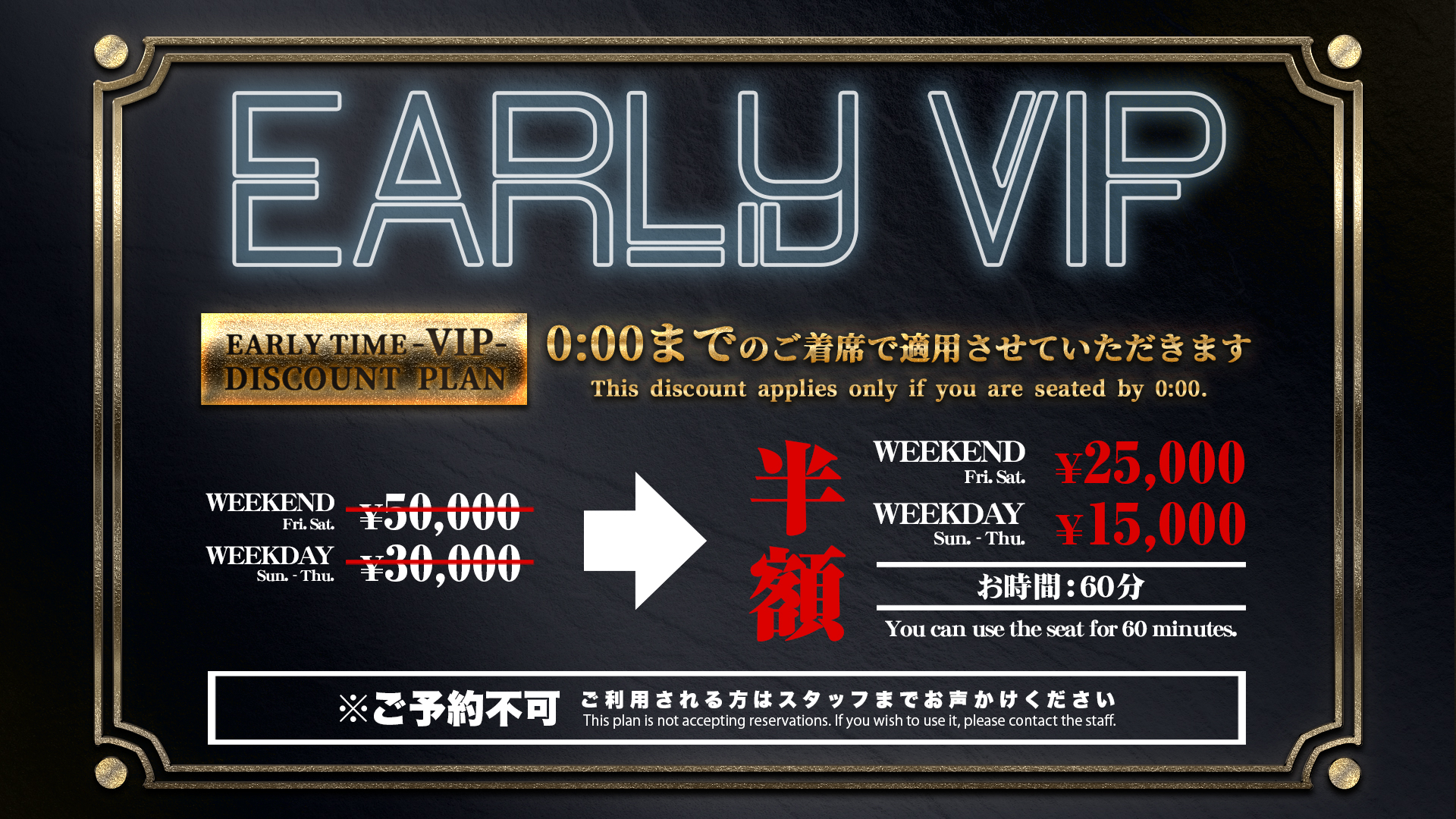 VIP席ご利用について/テーブルチャージに入場料金は含まれておりません。